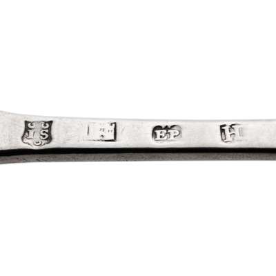 Assay Master Edward Penman, of Hanoverian pattern with rat tail to bowls and initial IS / MW to terminal