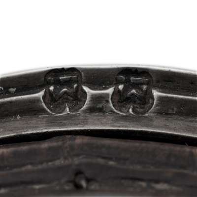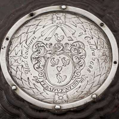 It appears likely that the armorial engraved to the boss was engraved in Scotland rather than by the maker, the style of engraving the mantling around the armorial and the lettering all showing much more Scottish characteristics than European. It seems likely that having acquired this piece on the continent Alexander Cockburn of Caldra has had his armorial engraved on return.