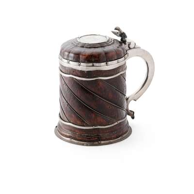 Note: This fine wooden and silver-mounted tankard undoubtedly was an item of great status when commissioned and made in the late 17th century. An impressive piece such as this bringing high quality wood and silver work together would have been not just an impressive and useful object but an exotic one on a Scottish table.