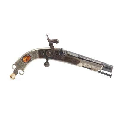 signed CAMPBELL on the lock, gemstone inset on butt and forming the pricker terminal as a thistle head original belt hook and ramrod