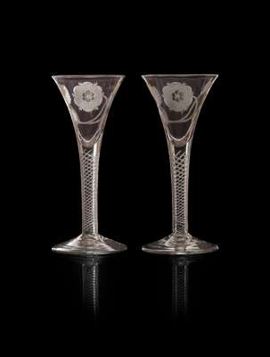 A FINE AND RARE PAIR OF JACOBITE ENGRAVED WINE GLASSES