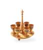 carved in sycamore wood, with 6 cups with transfer-printed scenes, fitted to a turned stand and raised on turned feet, bears maker's stamp