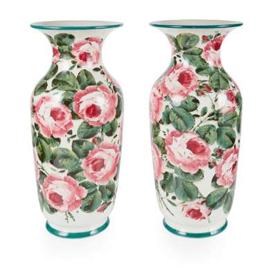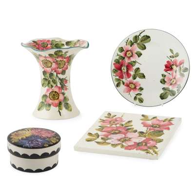 A PAIR OF WEMYSS WARE LOW CANDLESTICKS