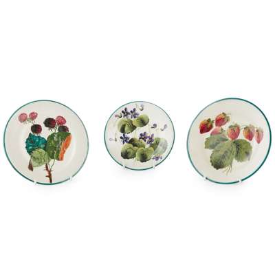 decorated by Edwin Sandland, painted and impressed WEMYSS, 12cm diameter; together with a 'BRAMBLES' SMALL PLATE, impressed WEMYSS WARE/ R. H. & S., printed retailer's stamp, T. GOODE & CO., 14cm diameter; and a 'STRAWBERRIES' SMALL PLATE, painted and impressed WEMYSS, printed retailer's stamp T. GOODE & CO.