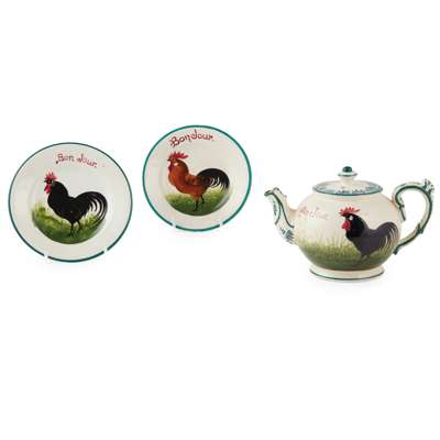 impressed WEMYSS WARE/ R. H. & S., printed retailer's stamp T. GOODE & CO., 25.5cm across; together with a group of 'BROWN COCKEREL & HENS' WARES, comprising a TEAPOT & COVER, impressed WEMYSS WARE/ R. H. & S., printed retailer's stamp T. GOODE & CO., 10.5cm high; and TWO BREAKFAST PLATES, each impressed WEMYSS and printed retailer's stamp T. GOODE & CO., each 12.3cm diameter
