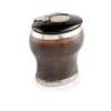 of baluster form, engraved GA to underside of base, applied mounts to collar and base, the hinged lid with oval cartouche with engraved motto 'STARK LOVE & KINDNESS' crest of shaking hands and ROB GIBB