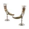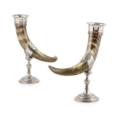 A PAIR OF SILVER-PLATED MOUNTED HORN GARNITURE
