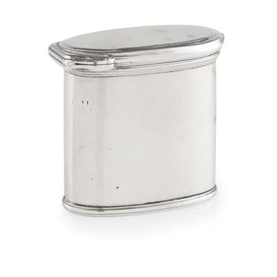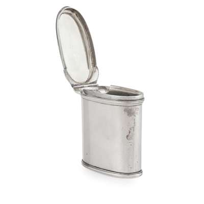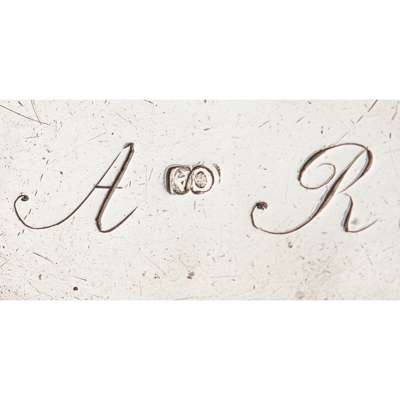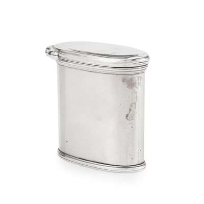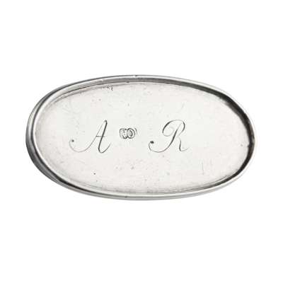marked CA, of oval outline and straight sided form, with simple hinged cover, italic AR engraved to underside