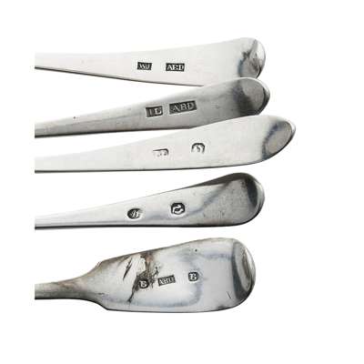 to include, John Leslie, James Erskine, John Smith, William Jamieson and ‘B’, of Old English and Fiddle pattern with engraved initials