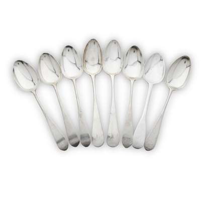 marked NG, ABD, of Celtic point pattern, engraved italic initials to terminal; together with another pair, Robert Keay, Edinburgh 1805, and another Charles Fowler, marked CF, ELGIN, *, all of Old English pattern, engraved initials to terminal