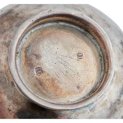 marked IG twice, of traditional form, the lugs each engraved 'J McC' in a stylised border, 'SCUOAB ASS' engraved to the body, to a circular foot