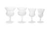 comprising twelve wine glasses, eleven smaller port glasses, one slightly larger claret glass, a decanter jug with stopper, a small decanter with stopper, a small scent bottle, two small posy vases, and two round butter dishes