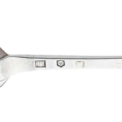 marked T.I, rose head B, of Hanoverian pattern with crest and motto to reverse of terminal and simple heel to bowl