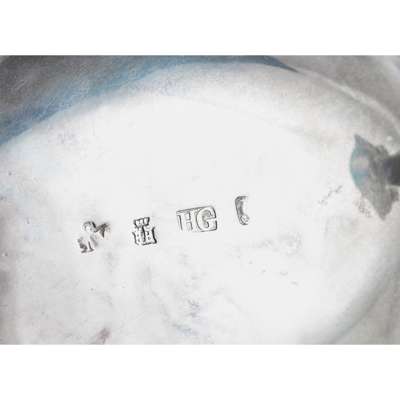 James Welsh marks along with James Mitchell's are the only maker's marks in Scotland to include a figure within the punch. It has long been debated what these figures are holding, a bag of coinage, precious metal, or tool of the craft, There seems little doubt it does signify a connection with the craft and trade.