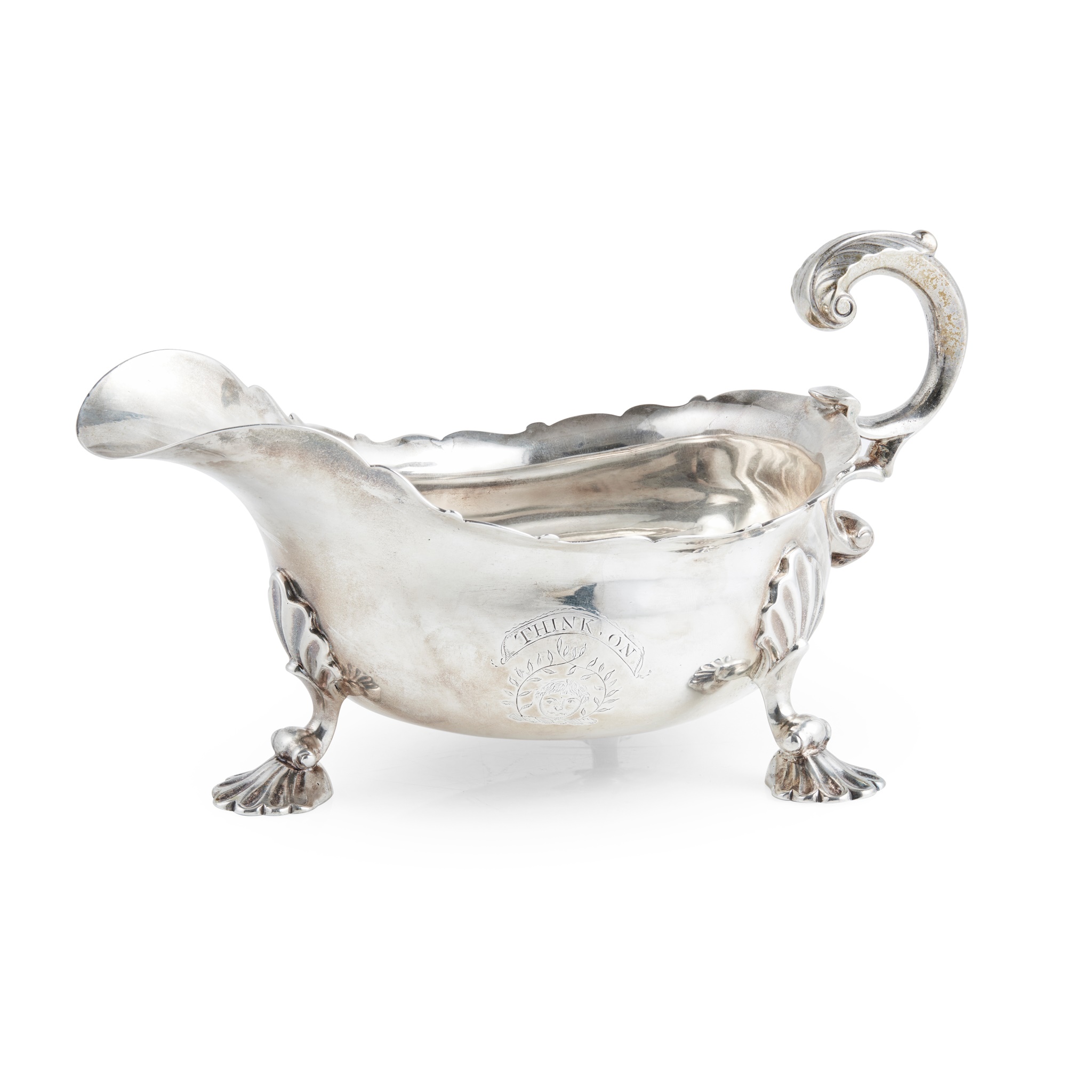 Note: Given the date of hallmarking this sauce boat was either in the possession of Major John Maxwell of Cardoness in the County of Kirkcudbrightshire (born 5th April 1700 died February 1754) or one of his four sons The Maxwells of Cardoness were a cadet branch of the Maxwells of Calderwood in the County of Lanarkshire.