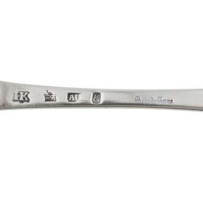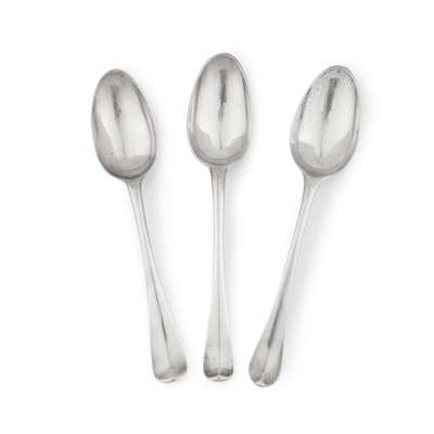 Assay master Hugh Gordon, of Hanoverian pattern, engraved Breadalbane to reverse of stem; together with another similar, James Kerr, Edinburgh 1734, engraved Breadalbane to stem and engraved initials to reverse of terminal and one further, David Marshall, Edinburgh 1789 with the same initials engraved to reverse of terminal, all of Hanoverian pattern