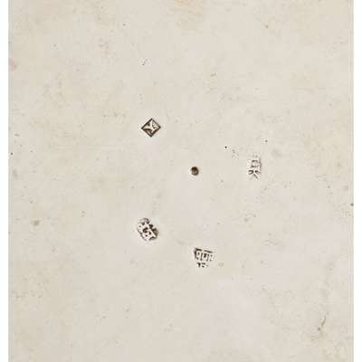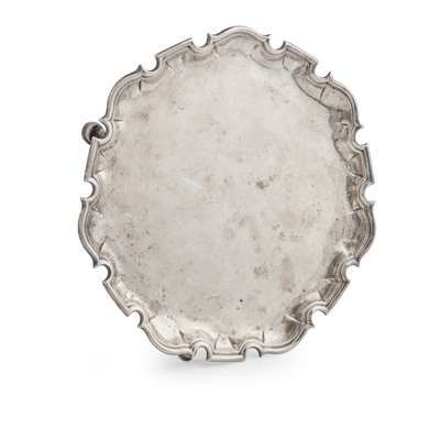 Assay Master Edward Penman, of shaped circular outline with moulded scalloped border, raised on three scroll and hoof feet