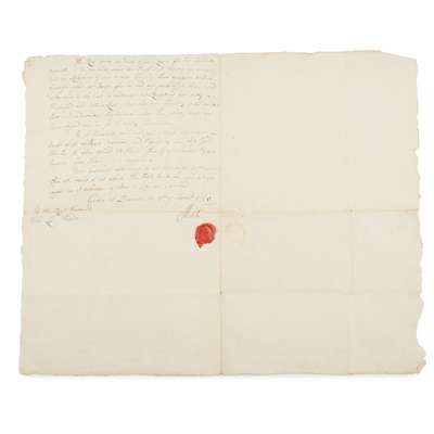 single bifolium written on two sides (in a secretarial hand), with Mar's autograph signature ('Mar') and red wax seal at foot, docketed 'To the Right Honorable the Lord Haddo, 7th Septem[be]r 1715', old folds