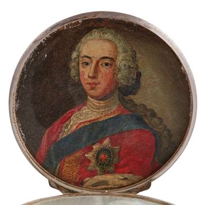 A MID 18TH CENTURY RARE CONTINENTAL JACOBITE ENAMEL HIDDEN PORTRAIT SNUFF BOX
