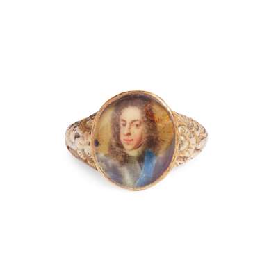AN 18TH CENTURY AND LATER JACOBITE PORTRAIT MINIATURE RING