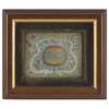 CONTAINED WITHIN A FRAME, SURROUNDED BY A DECORATIVE FOLIATE CUT PAPER DESIGN