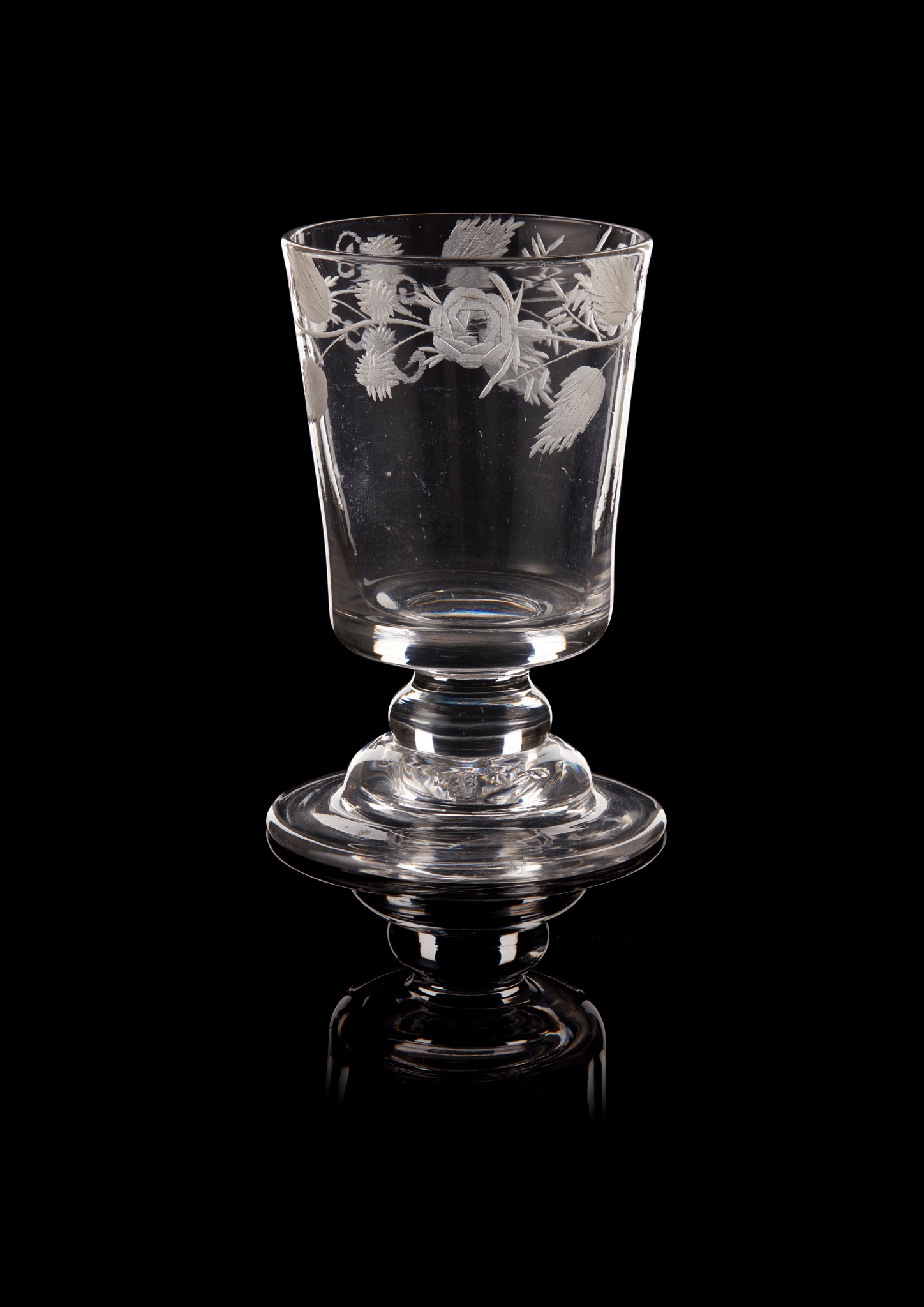 A SCARCE 18TH CENTURY JACOBITE DRAM GLASS