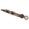 blade marked SANDERSON' SON, the carved basket weave wooden handle with embossed thistle mounts and foil backed paste to pommel, the etched blade with Royal Cypher, regimental number and battle honours, leather covered scabbard set with bi-knife and fork and embossed thistle and acorn mounts