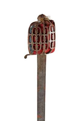 A MID / LATE 18TH CENTURY SCOTTISH BASKET HILTED CAVALRY OFFICER'S BROAD SWORD