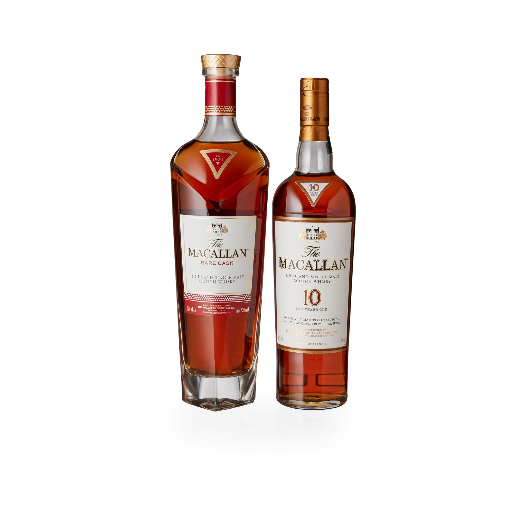 with case, 700ml/ 43%; together with THE MACALLAN 10 YEAR OLD SHERRY OAK, with carton, 700ml/ 40%
