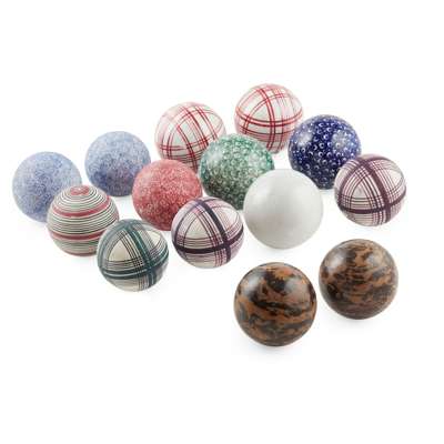 comprising sponged, plaid and concentric line decoration, including a jack; together with TWO MARBLE EXAMPLES