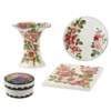 decorated by Edwin Sandland on a black ground, impressed and painted WEMYSS, 9.5cm diameter; together with a 'DOG ROSES' WALL TILE, decorated by Edwin Sandland, painted WEMYSS, 15.2cm square; a SMALL 'DOG ROSES' LADY EVA VASE, painted and impressed WEMYSS, 15cm high; and a 'DOG ROSES' SIDE PLATE, decorated by Edwin Sandland, 17.2cm diameter