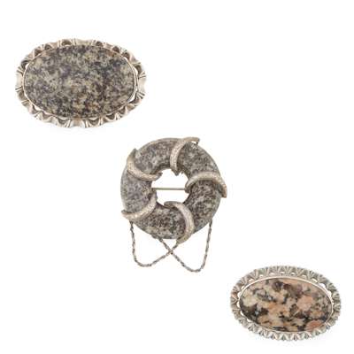 A COLLECTION OF VICTORIAN GRANITE BROOCHES