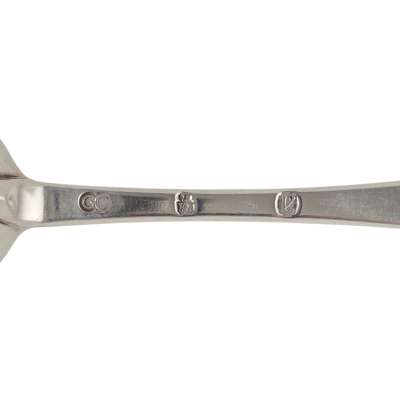 marked GC, three towers, gothic E, of Hanoverian pattern with script initials AAL to terminal and facetted drop to the heel of the bowl