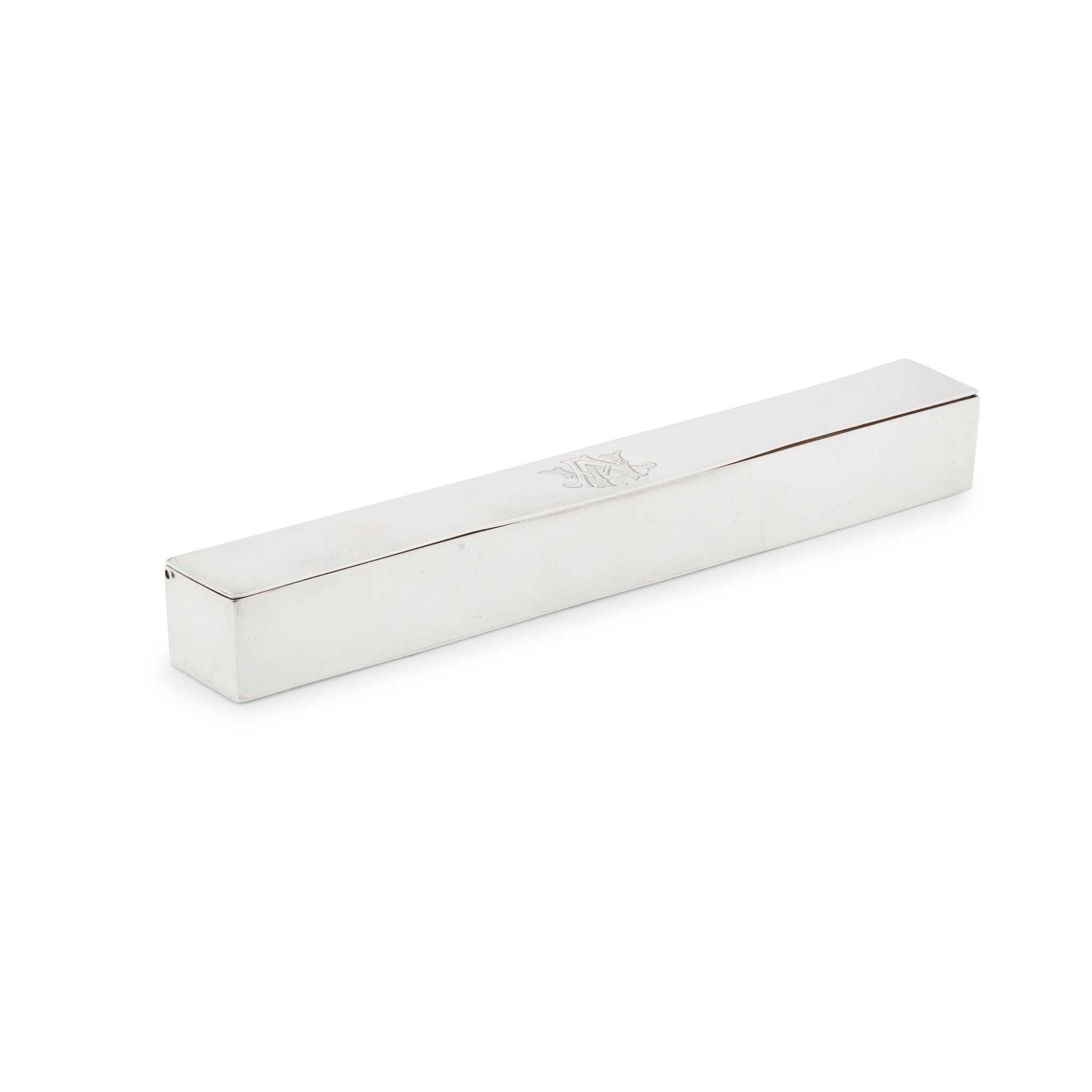 marked J.C, ABDn, of simple rectangular outline the hinged lid with shaped thumbpiece and gothic initial WA engraved the interior gilded