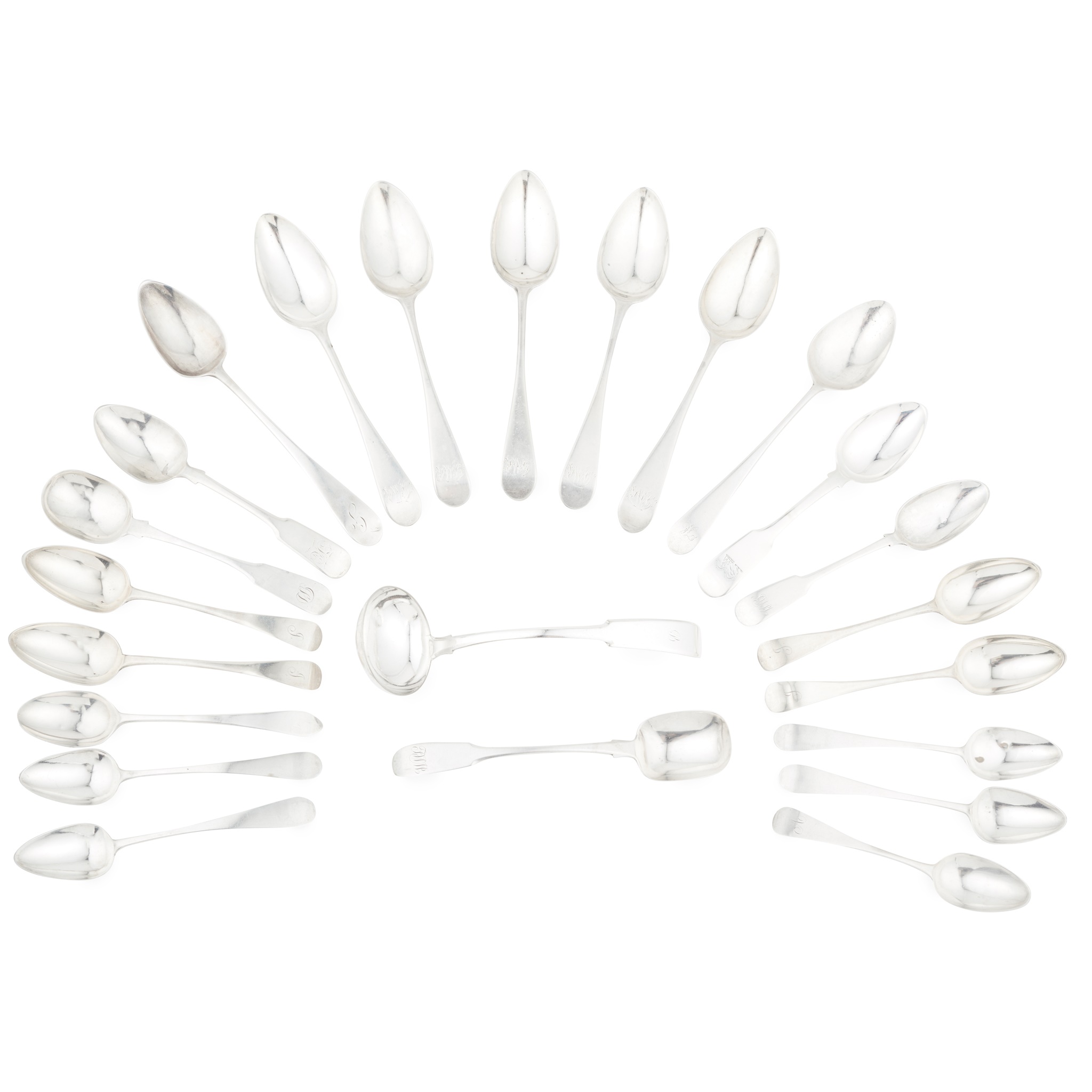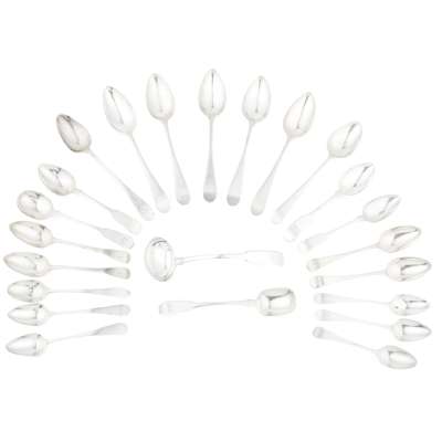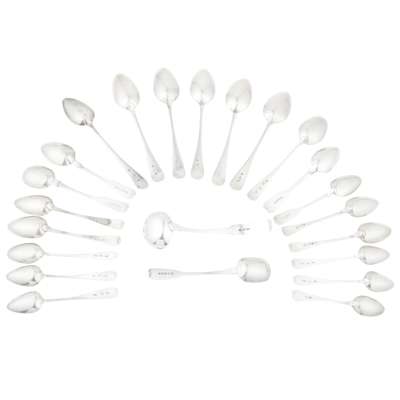 marked IE, boar's head, thistle of Old English pattern with engraved initials to the terminal, together with a similar example; also to include a collection of Aberdeen flatware by various makers
