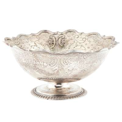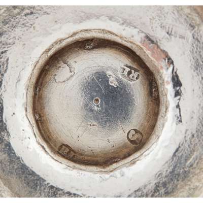 marked RL, S, RL, town mark, of slightly everted form with a scallop border, chased acanthus and scroll decoration to the interior of the gilt bowl