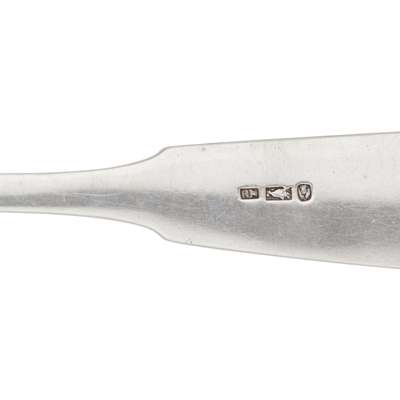 marked RN, cornucopia, thistle, of Fiddle pattern, engraved initials to terminal