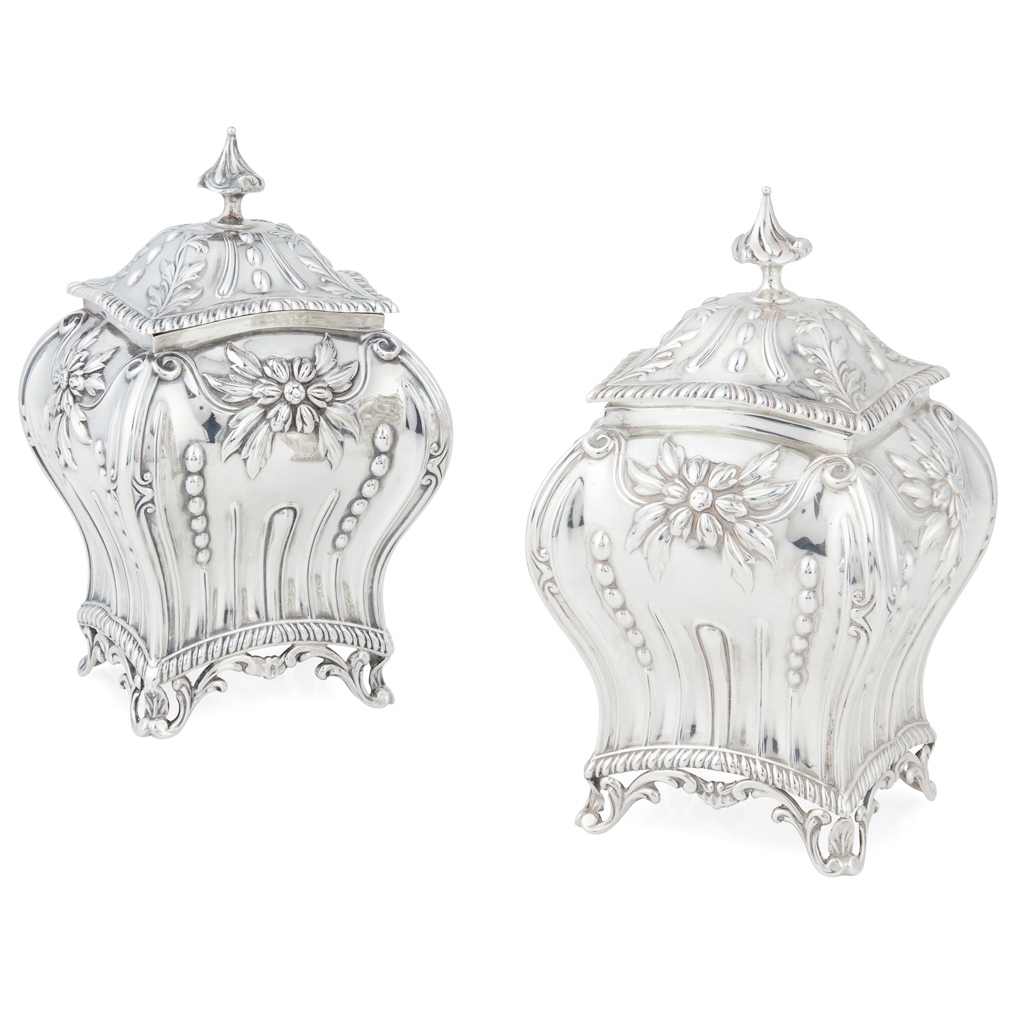 A MATCHED PAIR OF VICTORIAN AND LATER TEA CADDIES