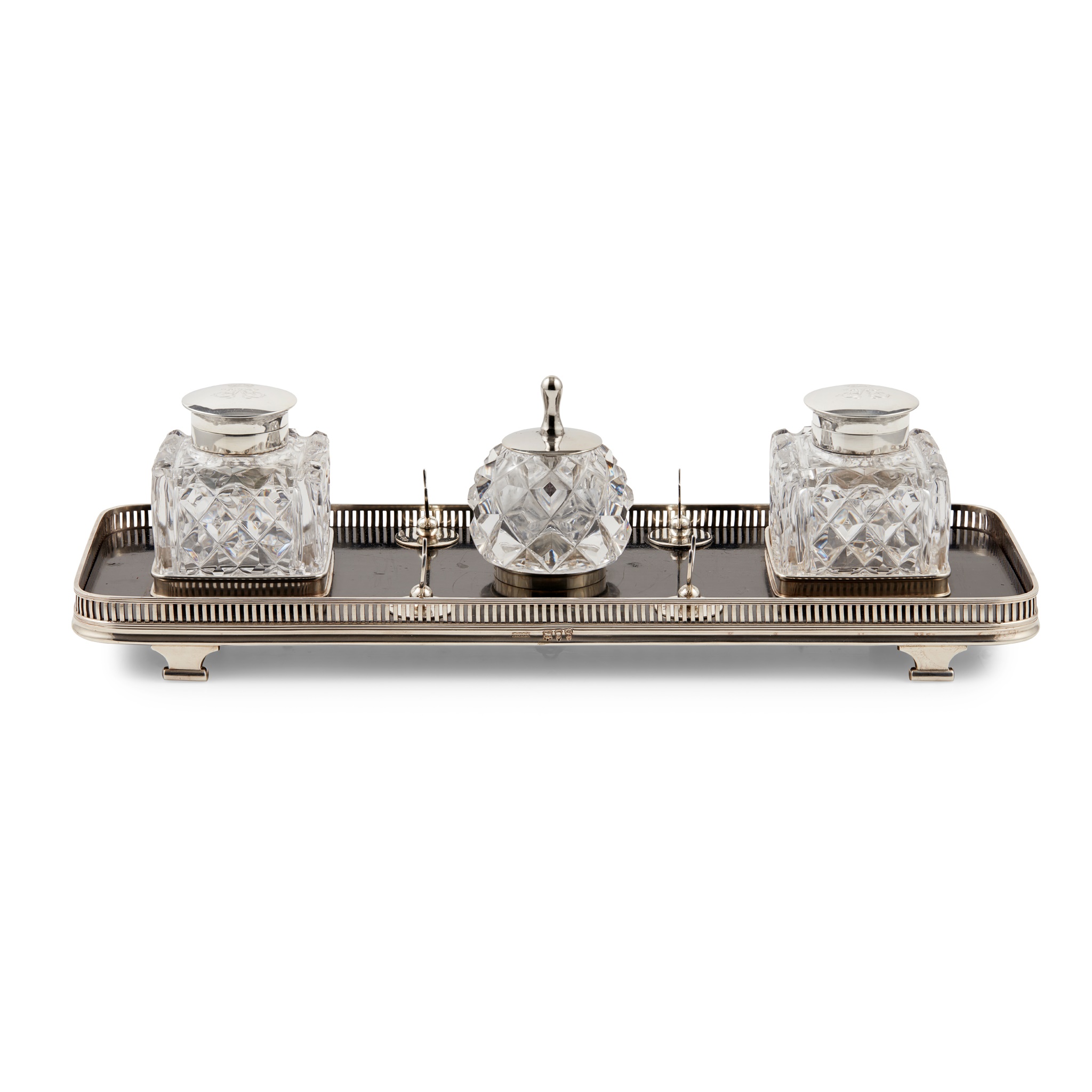 THE 5TH DUKE OF SUTHERLAND'S VICTORIAN SILVER AND EBONY PARTNERS DESK STAND