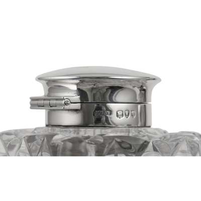 retailed by J C Vickery Regent Street London, the rounded rectangular ebony base with reticulated galleried sides, set with twin pen rests flanking a pair of inkwells with domed cover engraved with a coronet and cypher flanking a powder pot, each with a cut crystal base