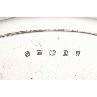 Given the date of hallmarking this salver was in the possession of Sir John Hay of Smithfield and Haystoun in the County of Peebleshire, the 5th Baronet (born 15th January 1755 died 23rd May 1830). Sir John was the eldest son of Sir James Hay, the 4th Baronet and his wife, Dorriel Campbell, the youngest daughter and co-heiress of Daniel Campbell of Greenyards in the County of Stirlingshire. Sir John married The Honourable Mary Elizabeth Forbes, the second and youngest daughter of James Forbes, the 17th Lord Forbes and his wife, Catharine Innes on the 9th of July 1785. He succeeded his father as the 5th Baronet of Smithfield and Haystoun on the 21st of October 1810.