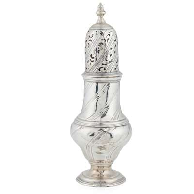 of baluster outline, with sweeping fluted detail, the pull-off pierced lid with knopped finial