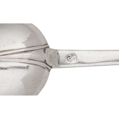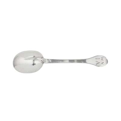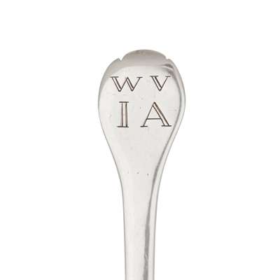 marked to stem RI in a heart punch, with a rat tail bowl, engraved initials 'WV/ IA' to reverse of the trefid terminal