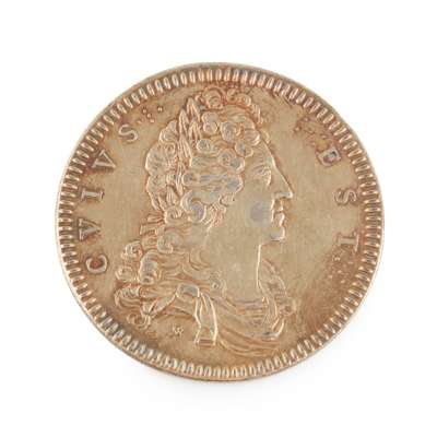 This medallion, struck in 1710, shows the plans and hopes held by the Stuart exiled court. This medallion 5 years before the eventual invasion of 1715 was no doubt a key propaganda message. It is believed that this is the medallion from the contemporary account given by Abel Boyer which states ‘About this time, a medal was dispersed in the Netherland, the Chevalier de St. George’s Friends with the Prince’s head on the right side and the words CUIUS EST; and on the Reverse with Kingdoms of Great Britain and Ireland with this motto REDDITE. The medal was undoubtedly struck at this juncture, upon the hopes given by the Jacobites in England to their correspondents in France that the British Court and Nation were ready to invite the Pretender………. But whatever ground there was for such expectation, things were not yet ripe enough for the Pretenders Friends to throw off the Mask’