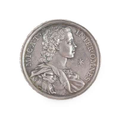 Two main types of this classic 'Two Princes' medallion exist: those without edge lettering, and the rarer type, such as this, with the additional motto to the edge. Struck in 1731 to mark Prince Charles 11th birthday it shows an almost 7-year-old Prince Henry on the reverse. Unusually neither of the princes is mentioned by name, perhaps suggesting hope of a widespread dispersal of this medallion not just on the Continent but also on British soil.