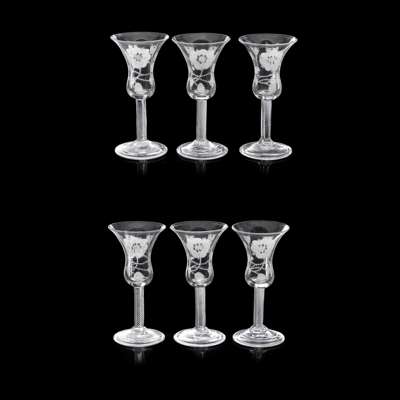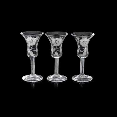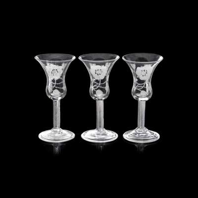 A RARE SET OF 18TH-CENTURY JACOBITE WINE GLASSES