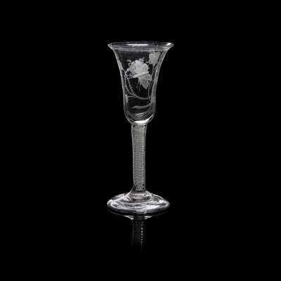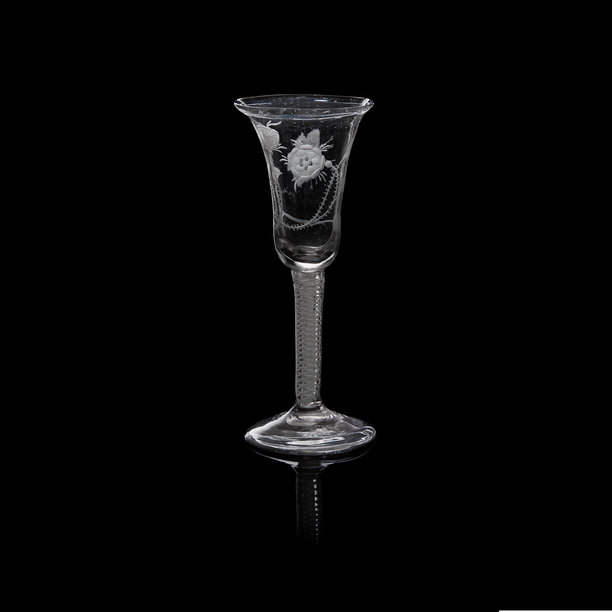 A MID / LATE 18TH-CENTURY JACOBITE ENAMEL TWIST STEM WINE GLASS