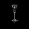 the drawn trumpet bowl engraved with trailing displayed rose head flanked by open and closed buds, the reverse of the bowl with engraved moth, raised on a straight white multi-twist enamel stem and domed circular foot