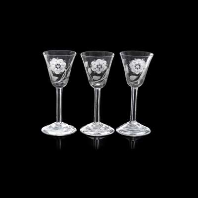 A SET OF THREE 18TH CENTURY JACOBITE WINE GLASSES