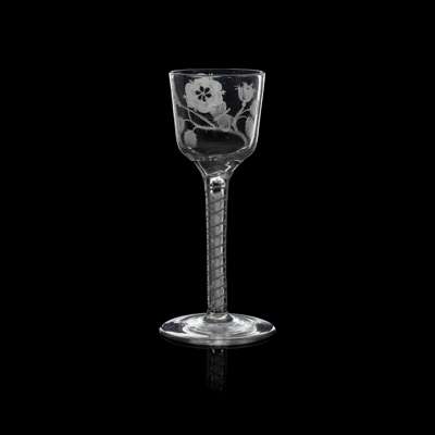 A RARE ENAMELLED JACOBITE WINE GLASS